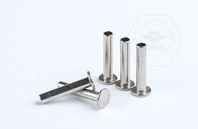 安裝時(shí)尾部空心部分受擠壓向外翻邊,形成卡扣,固定連接件。 扁圓頭半空心鉚釘主要用于金屬薄板或皮革、帆布、木料等非金屬材料的鉚接場合。